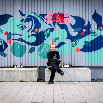 SCEB är en samtida konstnär och designer med rötter i graffiti- och street art-kulturen. Med erfarenhet från muralmåleri, offentliga konstprojekt och gallerisammanhang har hon utvecklat ett igenkännbart uttryck där färg, rörelse och form står i centrum. Hennes konst tar ofta sin utgångspunkt i det urbana landskapet men översätts till ett mer abstrakt och intuitivt bildspråk.
